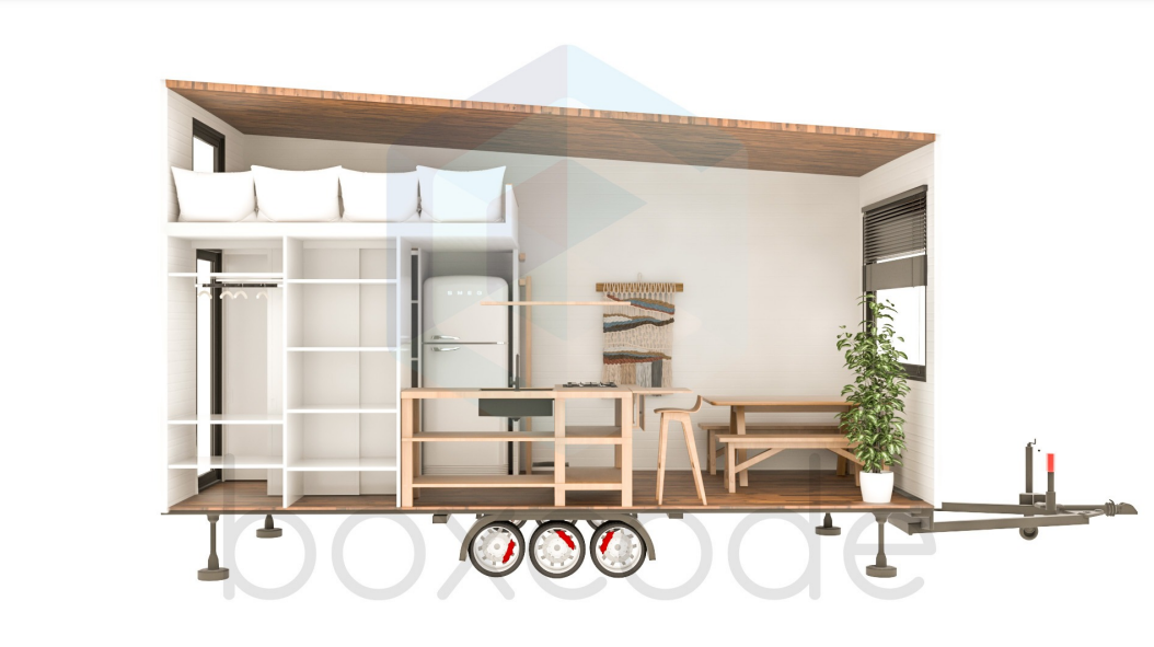 Pronto para uso off-grid: a tiny house está pronta para conectar com os seus sistemas off-grid como painéis solares, saneamento ecológico e sistemas de coleta de água da chuva.