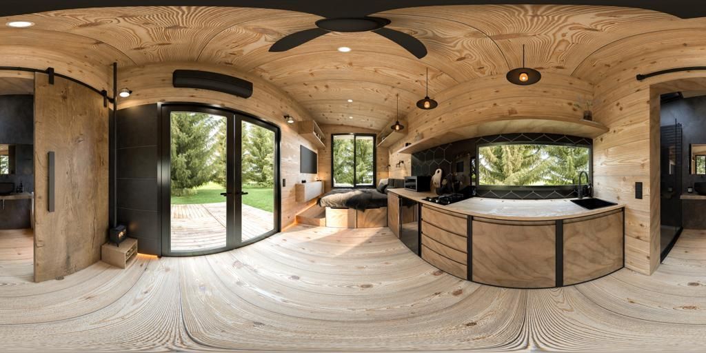 Tiny CODE02 JAPANDI é uma tiny house minimalista, serena e harmoniosa, que mistura o calor da simplicidade escandinava com a elegância refinada do design de inspiração japonesa – texturas de madeira natural, contrastes suaves e uma vida tranquila.